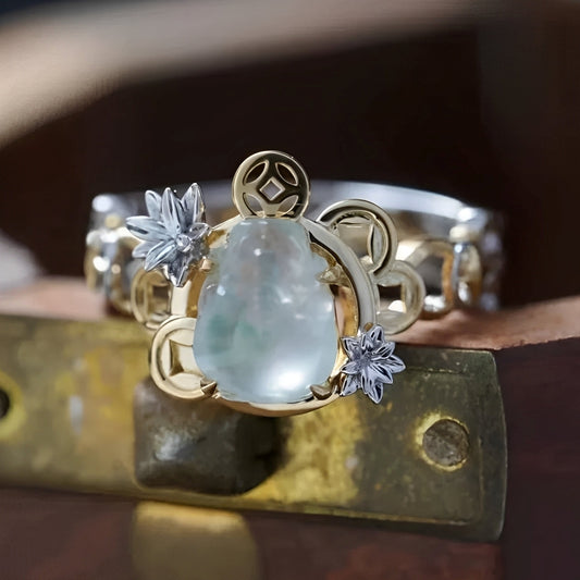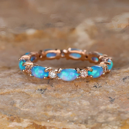 Jane – Bague en Opale Bleue avec Détails Dorés