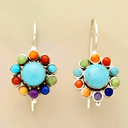 SOLDES D’HIVERMira – Boucles d'Oreilles Rondes Multicolores avec Turquoise