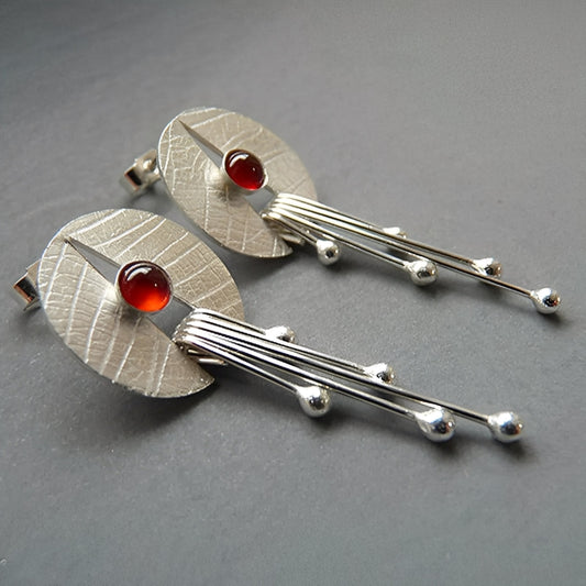 Carmine – Boucles d'Oreilles Pendantes avec Pierre Rouge et Design Ajouré